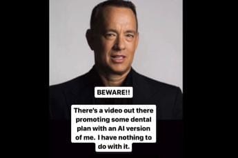 (Adnkronos) – Tom Hanks nello spot di un dentista Falso, colpa dell’intelligenza artificiale. L’attore, dal proprio profilo Instagram, denuncia l’uso della sua immagine, ricreata con l’AI, in uno spot per un imprecisato ”piano dentale”. “Fate attenzione”, scrive la star di Hollywood. “C’è in giro un video che promuove un piano dentale con una versione di me realizzata con l’intelligenza artificiale. Non c’entro niente”, avverte Hanks.