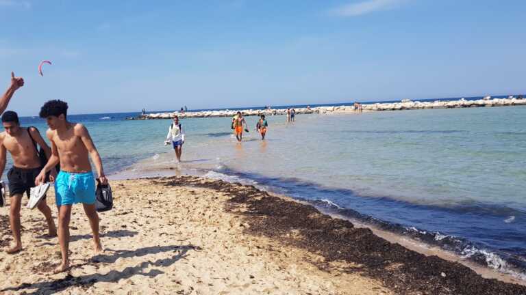 E per i bagnanti anche la sorpresa della “passerella” di sabbia che si è formata, come ogni volta che c’è la bassa marea, tra la spiaggia e i frangiflutti. Così in molti hanno letteralmente “passeggiato” sul mare e hanno potuto ammirare la città dal mare.