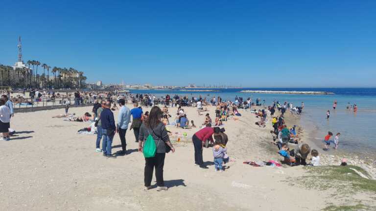Il forte vento di Pasquetta è ormai un ricordo e la primavera è arrivata con irruenza e temperature che fanno invidia a quelle estive. E così, a Bari, è già tempo del primo bagno in mare con le spiagge cittadine affollate di tante persone per un tuffo o, semplicemente, per la prima tintarella.