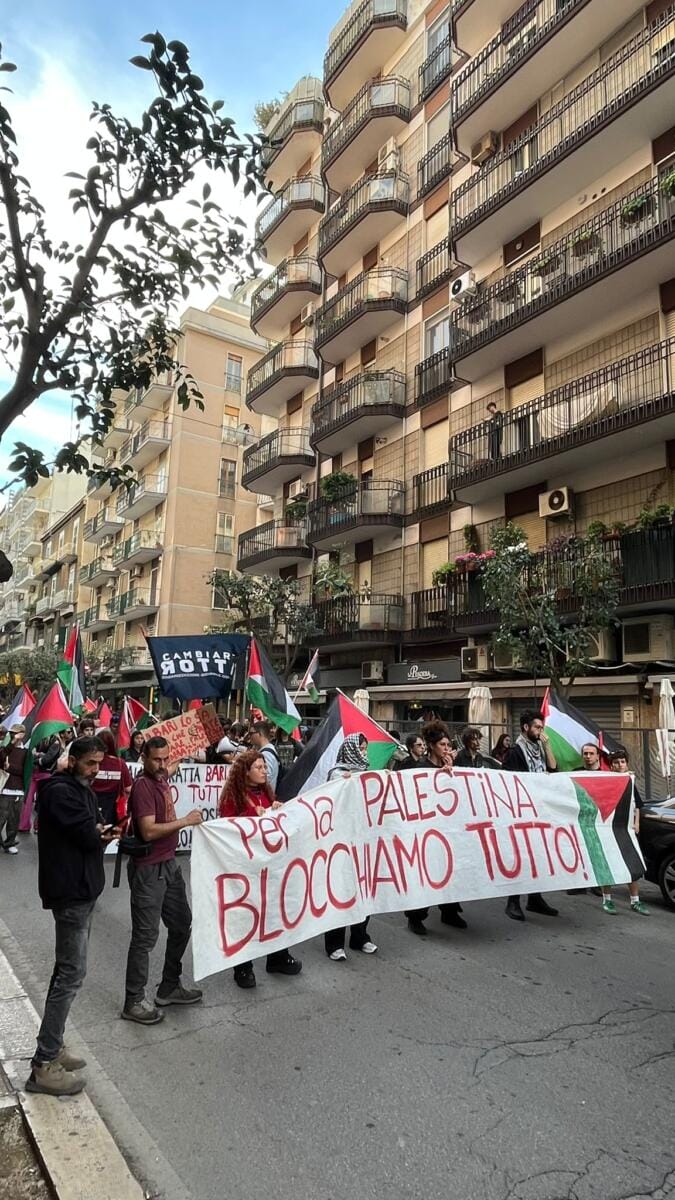 Studenti e associazioni baresi scendono in piazza in sostegno al popolo palestinese. «A partire da agosto 2025 cinque navi cargo sono passate dal porto di Bari, secondo la rotta regolare di collegamento Bari-Gioia Tauro per le merci da e per Israele» fanno sapere le associazioni che nelle prime ore del pomeriggio sono partite da piazza Umberto per sfilare in corteo verso il varco Dogana del porto.