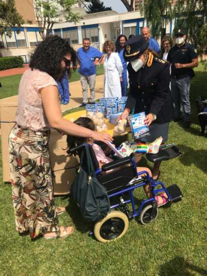Il Questore Giuseppe Bisogno ha salutato i piccoli degenti augurando loro una pronta guarigione, e gli ha regalato orsacchiotti, macchinine e gadget della Polizia di Stato. È stata inoltre donata attrezzatura per l’assistenza ai neonati, da utilizzare in sale riservate alle neo mamme.