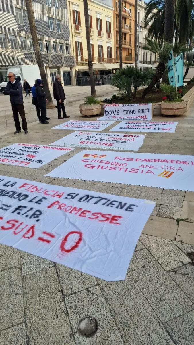 Gli azionisti della ex Banca popolare di Bari sono tornati in piazza per chiedere i ristori dopo il fallimento dell’istituto di credito. Circa cento persone, secondo gli organizzatori del presidio, hanno manifestato davanti alla Prefettura del capoluogo pugliese, mentre una delegazione è stata ricevuta dal prefetto, Francesco Russo.
