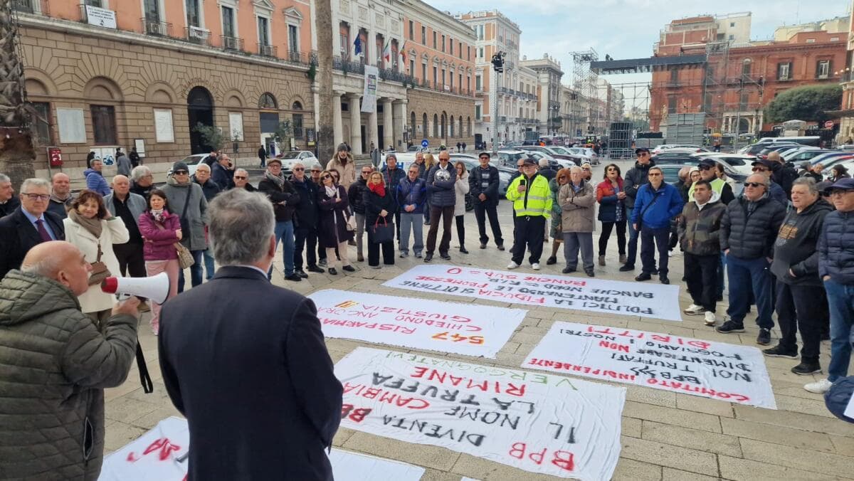 Gli azionisti della ex Banca popolare di Bari sono tornati in piazza per chiedere i ristori dopo il fallimento dell’istituto di credito. Circa cento persone, secondo gli organizzatori del presidio, hanno manifestato davanti alla Prefettura del capoluogo pugliese, mentre una delegazione è stata ricevuta dal prefetto, Francesco Russo.