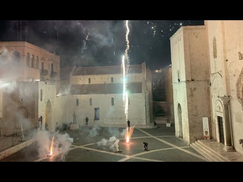 Nelle immagini e nei video diffusi sui social da padre Giovanni Distante, rettore della Basilica di San Nicola, si vedono i fuochi pirotecnici esplodere a pochissima distanza dalla Chiesa di San Gregorio e dalla stessa Basilica.