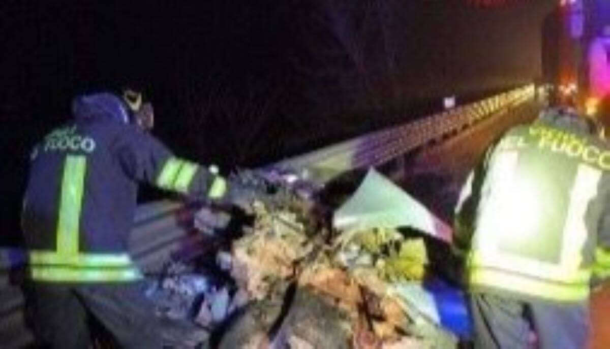 Sono stati loro, assieme al personale del 118 a intervenire su quel tratto di strada buio e reso ancora più pericoloso dal maltempo. È servito chiamare i vigili del fuoco per tirare fuori da quello che rimaneva dell’auto, i corpi dei due ragazzi. Lo schianto contro il camion è stato talmente forte da aver spezzato in due la macchina: la parte anteriore ammaccata e sbilenca da un lato, la posteriore irriconoscibile e finita contro il guardrail da un altro.