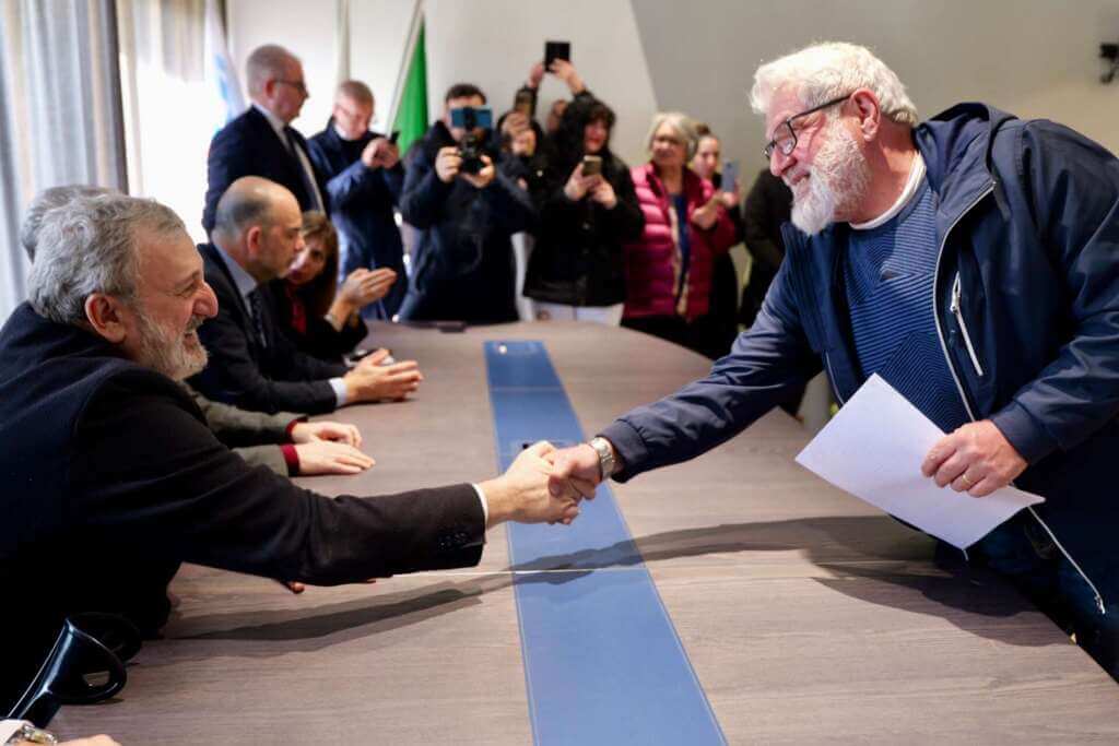 «Le aziende sanitarie pugliesi ora conteranno sulla collaborazione di persone che possono vivere liberamente la propria dimensione lavorativa, sindacale e familiare, partecipando in maniera appassionata alla rincorsa da parte della sanità italiana verso il diritto alla salute», ha affermato il presidente della Regione Puglia, Michele Emiliano, intervenuto all’evento organizzato per la firma dei contratti alla presenza, tra gli altri, del direttore generale dell’Asl Brindisi Maurizio De Nuccio, del direttore sanitario Vincenzo Gigantelli, della direttrice amministrativa Loredana Carulli e dell’amministratore unico di Sanitaservice Francesco Zingarello.