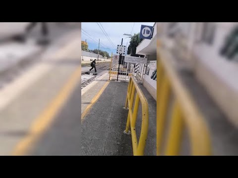 Nel video si vede una donna che, pur di non attendere il passaggio del treno o, meglio, utilizzare il sottopasso pedonale, preferisce lanciarsi sui binari attraversandoli. Di lì a poco l’arrivo del convoglio con il macchinista che lancia ripetuti segnali acustici.