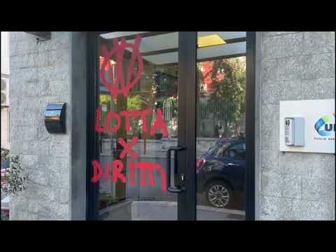 “No vax” imbrattano la sede della Uil Puglia a Bari. Il sindacato: «Rispetto per la casa dei lavoratori» – VIDEO