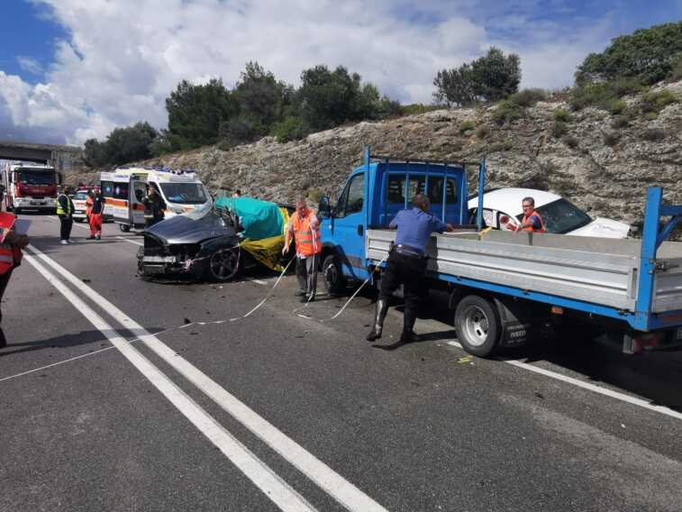 Quattro i mezzi coinvolti, un camion e tre automobili. Sul posto oltre ai mezzi del 118, accorsi per prestare soccorso ai feriti, i vigili del fuoco e i carabinieri. La strada è interrotta e il traffico veicolare si è fermato creando una lunga coda di autovetture. I carabinieri stanno cercando di deviare il traffico.