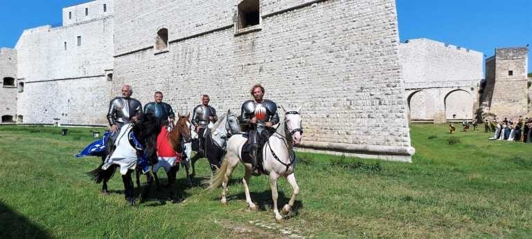Il set è stato allestito nell’affascinante scenario del fossato del Castello e ha visto protagoniste le associazioni barlettane “I cavalieri del mito, Brancaleone, I coronati di Ferrante d’Aragona e Thempus” con i propri cavalieri, dame, sbandieratori.