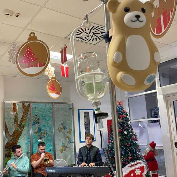Un live unico nel suo genere con Rubino che, alla tastiera, ha eseguito le più celebri canzoni del Natale per i piccoli pazienti e i loro genitori.