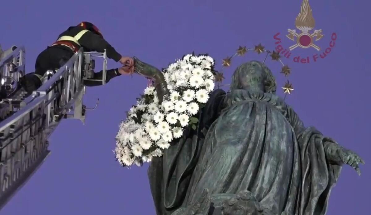 L’8 dicembre, come ogni anno, Roma si è raccolta attorno alla suggestiva cerimonia dell’omaggio dei Vigili del Fuoco alla statua dell’Immacolata in piazza di Spagna. Alle prime luci del mattino l’autoscala ha iniziato la sua lenta ascesa: cento gradini, trenta metri di altezza e, in cima, il caporeparto Roberto Leo, il più anziano in servizio al Comando di Roma. È stato lui a deporre la tradizionale corona di fiori tra le braccia della statua che domina piazza Mignanelli, rinnovando un rito che il Corpo nazionale vive con profonda partecipazione e che ogni anno attira cittadini e fedeli.