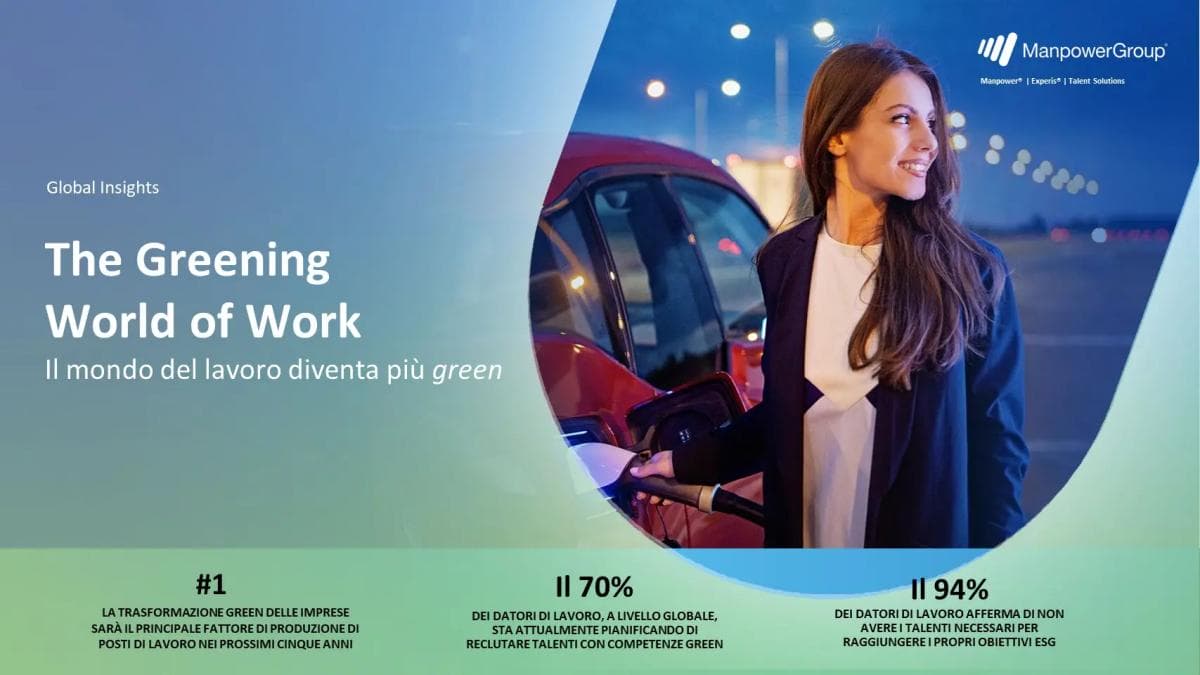 Secondo quanto evidenziato nello studio The Greening World of Work di ManpowerGroup, l’aumento della richiesta di queste figure è guidato da un maggiore impegno delle imprese sui temi ESG, spinto da una crescente domanda di governi, investitori, dipendenti e consumatori che chiedono azioni più coraggiose e trasparenza per affrontare il cambiamento climatico. In particolare, tra i principali settori che andranno incontro a profondi cambiamenti in seguito alla transizione verde ci sono quelli automotive ed energetico.