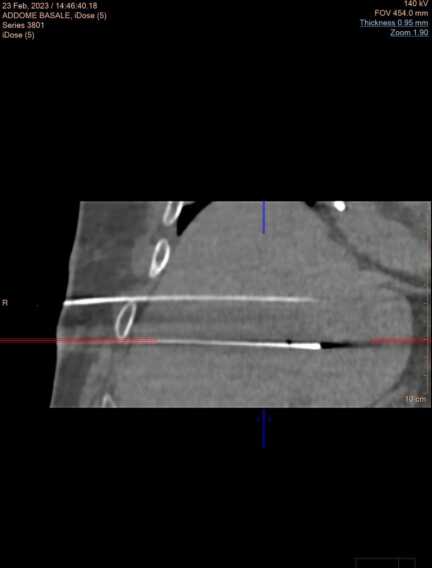 Il trattamento è stato eseguito con successo dal direttore dell’Unità operativa Diagnostica e Radiologia interventistica dell’Irccs “De Bellis”, dottor Fabio Fucilli, e non sono comparse complicanze peri-procedurali. È stato il risultato di un grande lavoro di equipe multidisciplinare (radiologi interventisti, anestesisti, tecnici radiologi e personale infermieristico specializzato) di elevato profilo e competenza che opera quotidianamente in modo integrato.