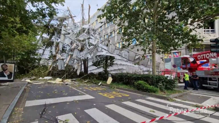 MILANO (ITALPRESS) – Il maltempo flagella la città di Milano. In via Ripamonti una grossa impalcatura è venuta giù in strada spinta dalle raffiche.